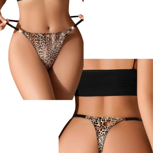 DAMSKIE STRINGI W PANTERKĘ BIELIZNA DAMSKA NA WIECZÓR