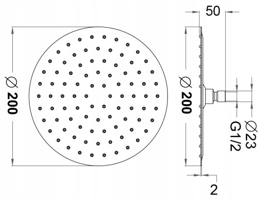 ТОНКИЙ СТАЛЬНОЙ ДОЖДЕВОЙ ДУШ, круглый, 20см, ХРОМ, тонкий, душевая лейка