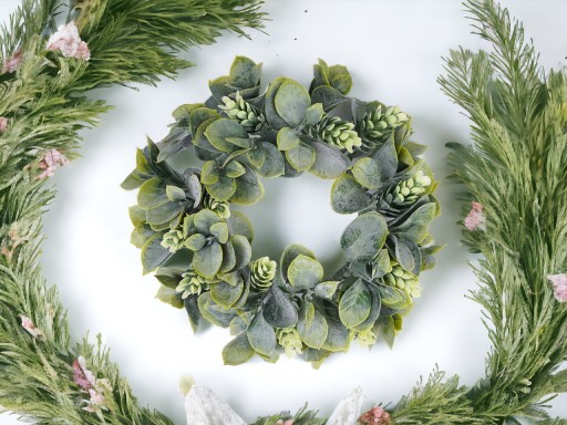 Dzięki swoim kompaktowym rozmiarom, wianek o średnicy 23 cm doskonale pasuje do różnej wielkości miejsc. Może być umieszczony na ścianach, drzwiach lub stolikach, dodając subtelnego wdzięku i stylu. Jego jasnozielony kolor doda świeżości i może uzupełnić różne aranżacje wnętrz, doskonale komponując się z innymi dekoracjami.