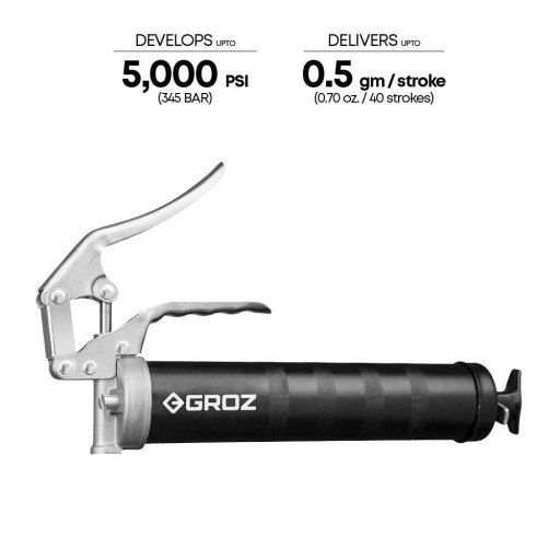 ✅Smarownica wytwarza ciśnienie do 345 barów (5000 PSI) przy wydajności 070 uncji/40 skoków (0,50 g/skok).