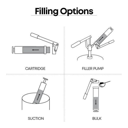 Smarownica jest przeznaczona do stosowania ze smarem o pojemności 14 uncji. (400 g) standardowym wkładem ze smarem i smar luzem 500 cm3.