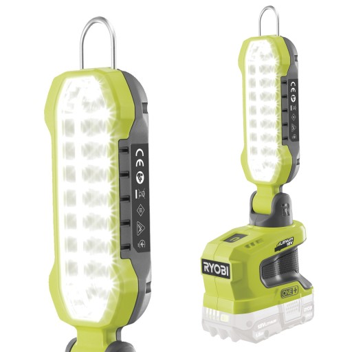 ✨Akumulatorowa lampa warsztatowa R18ALP-0 marki Ryobi to nowoczesne urządzenie charakteryzujące się kompaktowymi rozmiarami. Bardzo dobrze sprawdzi się zarówno wewnątrz pomieszczeń, jak i podczas prac w terenie. Za światło odpowiedzialne jest 18 diod LED, które emitują światło jasności 900 lumenów w odległości do 6 metrów.