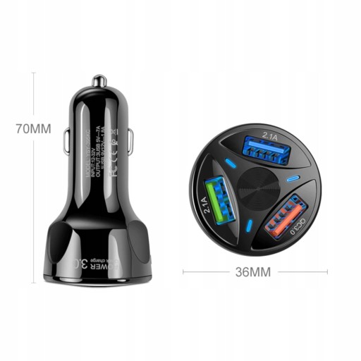 БЫСТРОЕ АВТОМОБИЛЬНОЕ ЗАРЯДНОЕ УСТРОЙСТВО 3xUSB QUALCOMM QC 3.0 SOLID UNIVERSAL