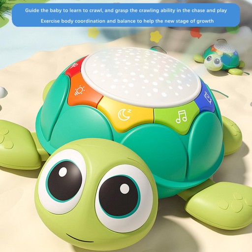 [Naucz się czołgać]: muzyczne zabawki dla dzieci pełzające żółwie, gdy żółw się porusza, zachęca dzieci do ćwiczenia raczkowania.