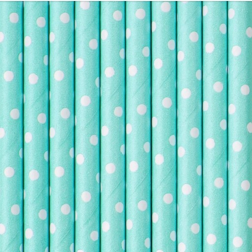 БУМАЖНЫЕ ТРУБОЧКИ, бирюзовые с белыми точками, 10 шт.