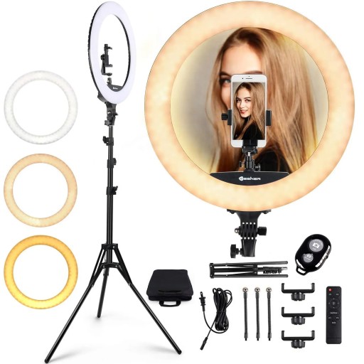 ✅ Oświetlenie LED w formie pierścienia: lampa pierścieniowa dostarcza równomiernego, delikatnego światła o naturalnej temperaturze barwowej, doskonale podkreślając detale i kolory podczas wykonywania makijażu czy fotografii.