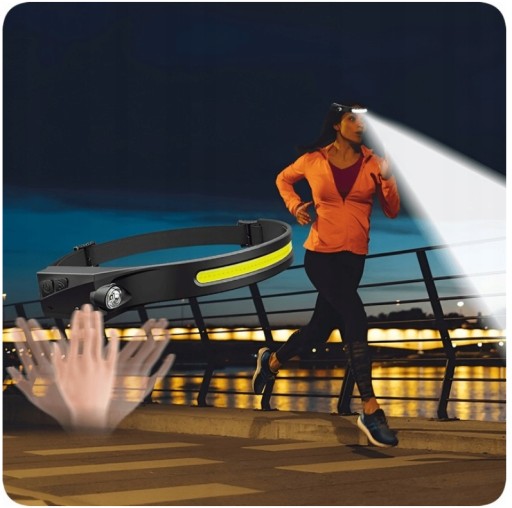MOCNA LATARKA CZOŁOWA LED REFLEKTOR NA GŁOWĘ COB CZUJNIK RUCHU CZOŁÓWKA