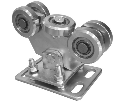 Stosowany do bram przesuwnych samonośnych i szynowych, mający za zadanie stabilizacje jej po zamknięciu uniemożliwiając ruchy boczne.