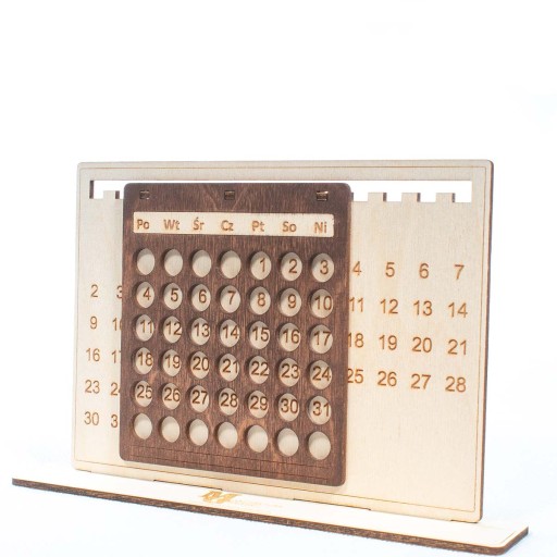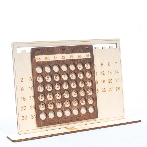 - Personalizowany: Możesz dodać grawer z imieniem, logo firmy lub dowolną inną treścią, co czyni kalendarz idealnym prezentem.