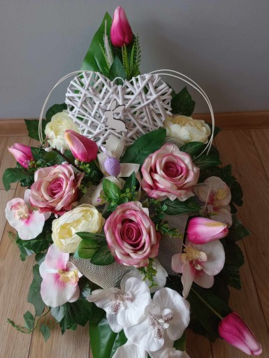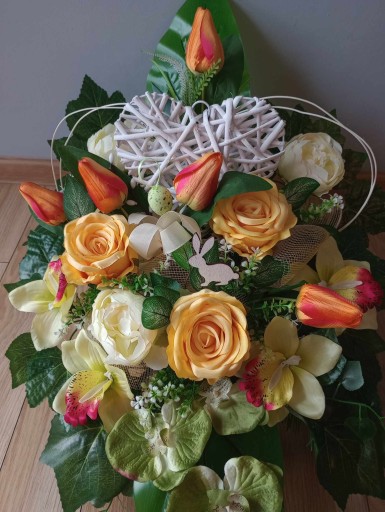Wiosenna KOMPOZYCJA SZTUCZNA z sercem ratanowym