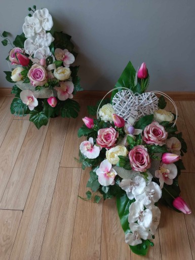 Zamawiasz ogólnie kolorystykę kompozycji, która może lekko się różnić od przedstawionych zdjęć (w razie jakiś braków kwiatków).