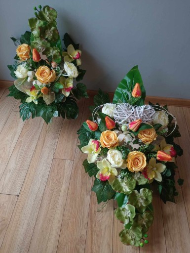 Zamawiasz ogólnie kolorystykę kompozycji, która może lekko się różnić od przedstawionych zdjęć (w razie jakiś braków kwiatków).