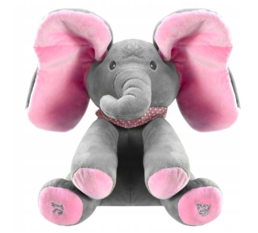 Po naciśnięciu przycisku PLAY słonik rozmawia i bawi się w chowanego z Twoim dzieckiem zakrywając oczka uszami. Dźwięk i ruch przyciągają uwagę dziecka.