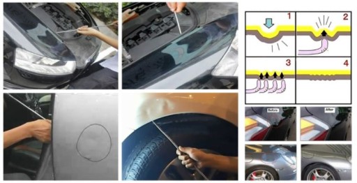 Druty wykonane z wysokiej jakości japońskich stopów stali, dzięki różnym końcówkom pozwalają na kompleksową naprawę praktycznie każdego rodzaju wgniecenia nawet w trudno dostępnych miejscach.