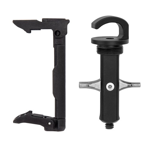 Schowek znajdujący się wewnątrz kolumny centralnej kryje kieszonkowy niezbędnik oferujący 2 klucze imbusowe. Dzięki nim z łatwością wyregulujesz statyw, dokręcisz aparat do płytki montażowej lub połączysz ze sobą różne akcesoria fotograficzne. Wyposażono go również w dwa męskie gwinty 1/4". Dzięki nim możesz połączyć niezbędnik z uchwytem na smartfon lub wkręcić go w wybrany gwint, aby klucze imbusowe były zawsze w zasięgu wzroku.