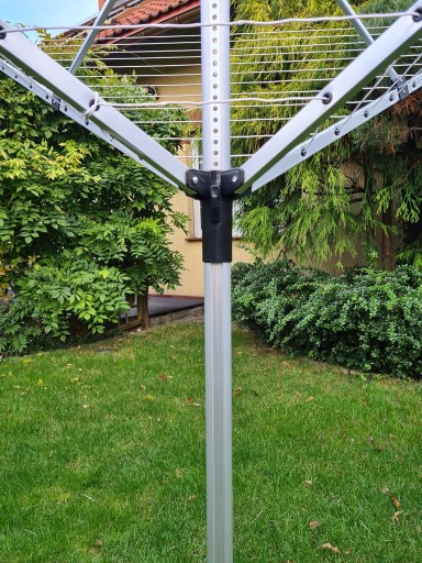 Najlepszej jakości aluminium odporne na działanie wszelkich czynników zewnętrznych i rdzy, daje gwarancje użytkowania przez długie lata. Stelaż posiada możliwość regulacji wysokości, oraz pozwala na powieszenia nawet 50m prania.