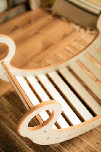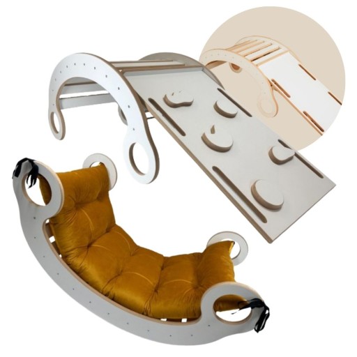Zestaw: Deska do balansowania Montessori + Zjeżdżalnia + Ścianka wspinaczkowa + Poduszka Karmelowa - wszechstronna, kreatywna zabawka dla Twojego dziecka