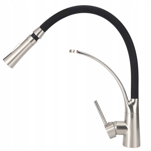 1. Elastyczna wyciągana wylewka o dużej krzywiźnie i obrocie o 360 stopni uzupełnia dostęp do zlewu i dobrze się cofa.