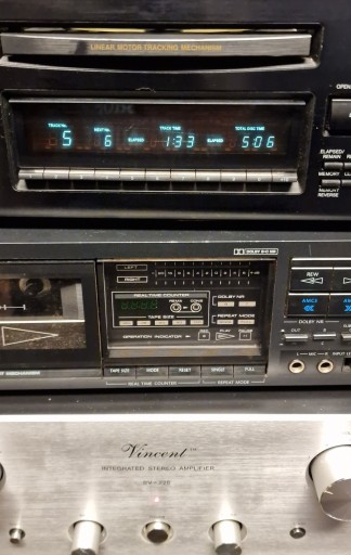 Odtwarzacz cd choć wszystko działa prawidłowo wystawiam jako uszkodzony. Jak nie stoi w poziomie to przeskakuje. Stojąc w poziomie jest ok.czyta i odtwarza również cd-r. Optycznie jak na foto ,niezbyt piękny.
