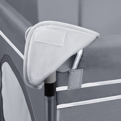 Zewnętrzny zamek, dolna przyssawka, trójkątne złącza, stalowa rurka są pokryte bawełnianą tkaniną, co zapewnia wielokrotną ochronę bezpieczeństwa dziecka.
