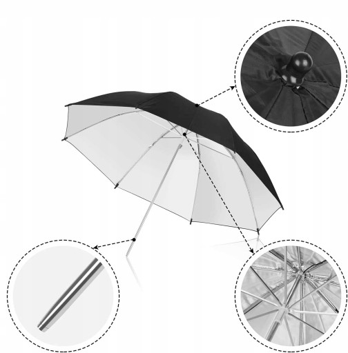 ✔️ Parasolka fotograficzna równomiernie rozprowadza światło z lamp błyskowych, żarówek czy świetlówek kompaktowych. Jest podstawowym elementem wyposażenia studia w zakresie regulacji oświetlenia. Idealnie nada się do każdego rodzaju fotografii: portretowej, reklamowej i użytkowej.