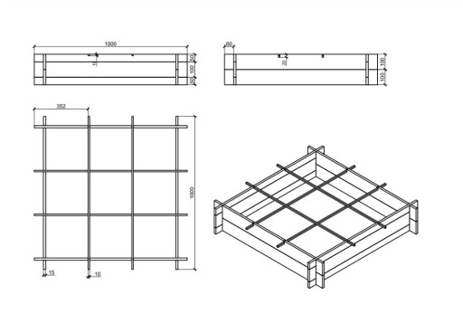 - Podział grządki na strefy segregacji uprawianych roślin dzięki cienkim listewkom ułożonym w kratę.