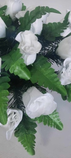 Stroik całoroczny, bardzo trwały z kwiatów sztucznych ,doniczka zalana betonem dzięki czemu jest stabilna i nie przewraca się.