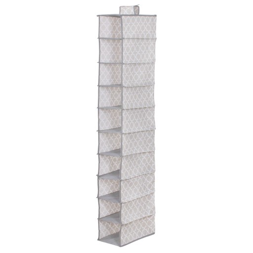 Produkt wyposażony został w 10 praktyczne przegródek, w których idealnie można posegregować ubrania. Dzięki wiszącemu organizerowi każdy element zyska swoje odpowiednie miejsce. Świetnie sprawdzi się on także w garderobie dbając o pościele, firanki, czy inne akcesoria.