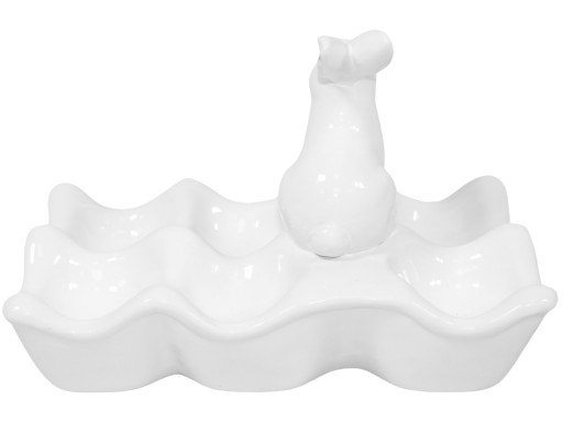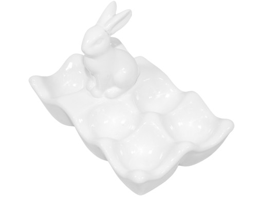 БЕЛАЯ КЕРАМИЧЕСКАЯ Подставка с ЗАЙЧИКОМ Тарелка на 6 ЯИЦ - 13,5x20x12 см