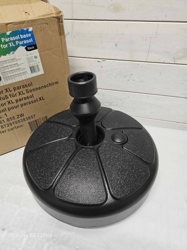 Odporna na warunki atmosferyczne podstawa parasola: dzięki zastosowaniu najwyższej jakości tworzywa sztucznego podstawa jest wytrzymała i może być pozostawiona na zewnątrz mimo złej pogody.