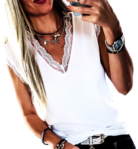 B00201 XL WHITE | BIAŁA BLUZKA ELEGANCKA POD ŻAKIET KORONKA TOP XL