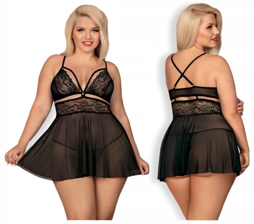 OBSESSIVE 838-BAB-1 BABYDOLL I STRINGI CZARNA S/M