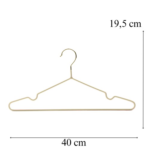 Zestaw 20 szt. wieszaków w kolorze beżowym, pokryte powłoką PVC zabezpieczą Twoje ubrania przed zsuwaniem się, zaokrąglone ramiona spowodują, że ubrania nie będą się odkształcać. Wieszaki posiadają specjalne wycięcia do zawieszania bluzek/topów na ramiączka. Wykonane z wytrzymałego i cienkiego materiału co pozwoli na zaoszczędzenie miejsca w Twojej szafie! Powiesisz na nich koszule, spodnie, bluzy, kurtki itp.