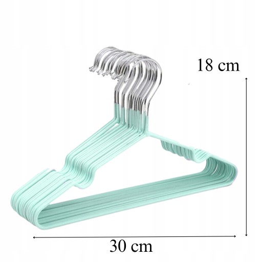 Zestaw 20 szt. wieszaków w kolorze niebieskim, idealnie dopełnią kolorem szafę Twojego dziecka! Pokryte powłoką PVC zabezpieczą ubranka przed zsuwaniem się, a zaokrąglone ramiona sprawią, że nie będą się odkształcać. Wykonane z wytrzymałego i cienkiego materiału co pozwoli na zaoszczędzenie miejsca w szafie! Dzięki specjalnym wycięciom, bez problemu zawiesisz koszulki na ramiączka oraz sukienki.