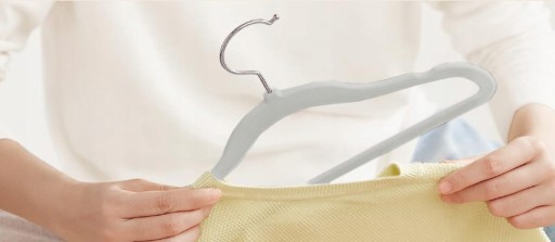Dzięki pokryciu materiału aksamitnym welurem, ubrania nie będą się zsuwać z ramion ani zsuwać się z wieszaka. Welurowa powierzchnia zapewnia pewność, że odzież pozostanie na swoim miejscu, co ułatwia organizację szafy i utrzymanie porządku.
