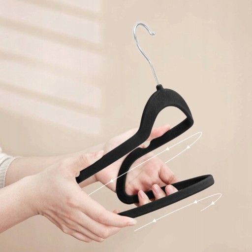 ✅ Materiał: Wieszaki są pokryte welurowym materiałem, który skutecznie zapobiega zsuwaniu się ubrań, co pozwala zachować ich doskonały wygląd i uniknąć pognieceń.