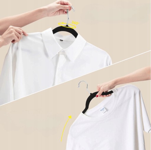 ✅ Obrotowy hak: Każdy wieszak wyposażony jest w obrotowy hak, który obraca się o 360 stopni, zapewniając łatwe i wygodne zawieszanie oraz dostęp do ubrań, co zwiększa komfort użytkowania produktu.