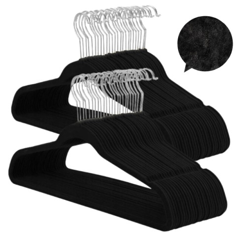 CZARNE WELUROWE WIESZKI NA UBRANIA 40 SZT ⭐⭐⭐⭐⭐