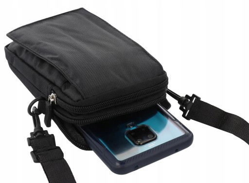 Saszetka posiada uchwyt do mocowania na pasek podtrzymujący spodnie