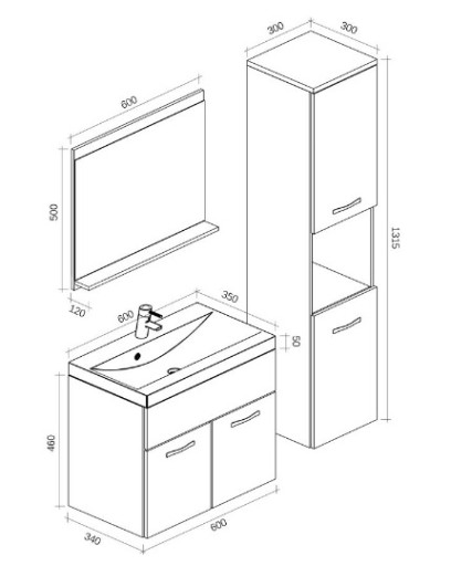 Мебель для ванной комнаты 60 зеркальный шкаф колонна под умывальник MATT BLACK