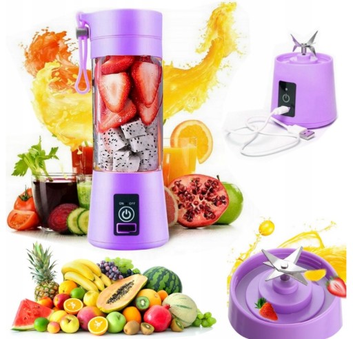 ZESTAW ZAWIERA: Blender USB Kabel USB NIEBIESKI FIOLETOWY RÓŻOWY ZIELONY