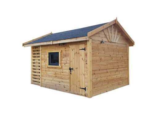 - Rozmiar pomieszczeń: domek 3x3m, drewutnia 3x 1m