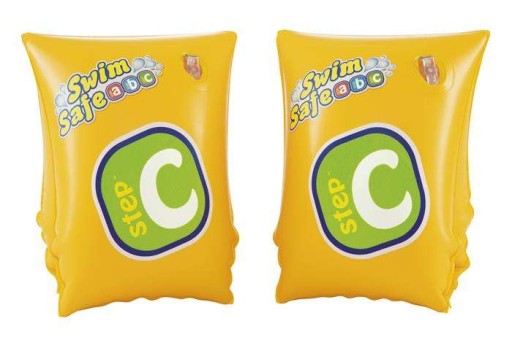 UWAGA! Rękawki do nauki pływania nie są sprzętem ratowniczym i nie zabezpieczają przed utonięciem. Należy używać ich pod nadzorem osoby dorosłej. Przed każdym użyciem należy sprawdzić stan szwów oraz zaworów, a w razie konieczności dopompować do nich powietrze.