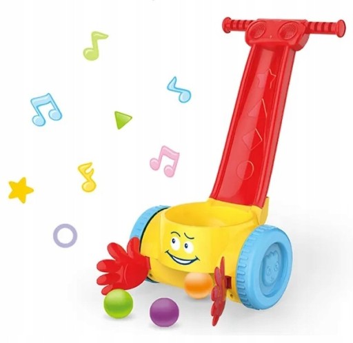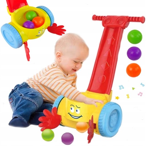 Zabawka ćwiczy koordynację ręka-oko, uczy związek przyczynowo-skutkowy i zachęca dziecko do ćwiczeń. W zestawie 3 piłeczki. Pchacz z funkcją zbierania i wyrzucania piłeczek dla najmłodszych to świetna, aktywna zabawa, która sprawi, że każde dziecko się uśmiechnie.