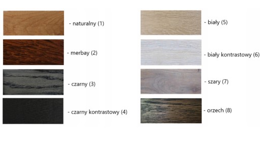 Kolor lameli: zgodnie z kolorystyką. Prosimy zwrócić uwagę że kolor w rzeczywistości mogę różni się! - z względu na to że jest to drewno naturalne. Jeśli nie znalazłszy odpowiedniego koloru, to możemy dobrać kolor indywidualnie.