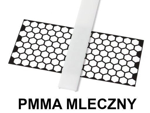- Mleczny - biała przesłonka - wnętrze profilu jest niewidoczne, bardzo dobrze rozprasza punkty świetlne