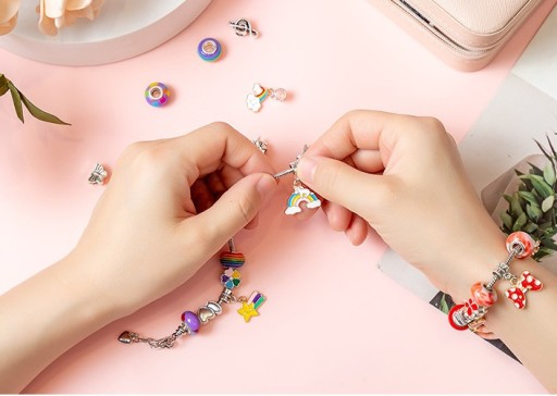 Koraliki typu Charms do stworzenia samodzielnie własnej, nietuzinkowej bransoletki zapewną każdej dziewczynce mnóstwo pozytywnego zajęcia. Wszystkie charms są wykonane z dobrej jakości materiałów, gwarantując trwałość i bezpieczeństwo noszenia. Pozwól swojemu dziecku na samodzielne tworzenie biżuterii i rozwijanie swoich zainteresowań.