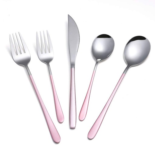 Zestaw sztućców SanbaoLive, 20-częściowy zestaw sztućców ze stali nierdzewnej dla 4 osób, zestaw sztućców polerowanych na lustro antykorozyjnych, zestaw sztućców zastawy stołowej do kuchni domowej Restauracja hotelowa (różowy + srebrny)
