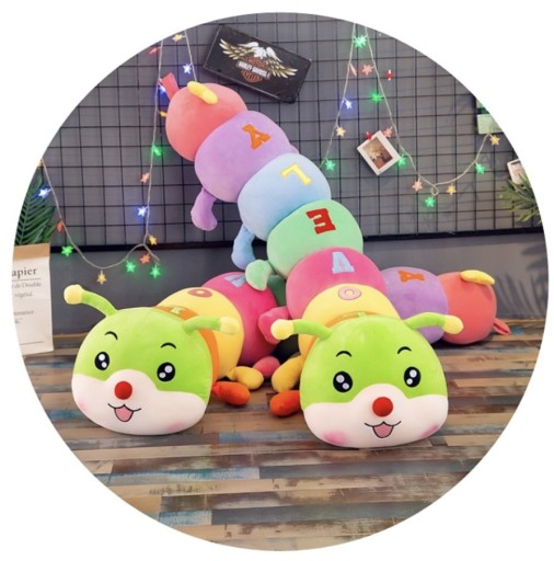 Ta pluszowa gąsieniczka skradnie serce każdemu, maskotka może pełnić funkcję pięknej dekoracji pokoju oraz służyć jako mięciutka przytulanka, poduszka czy zagłówek