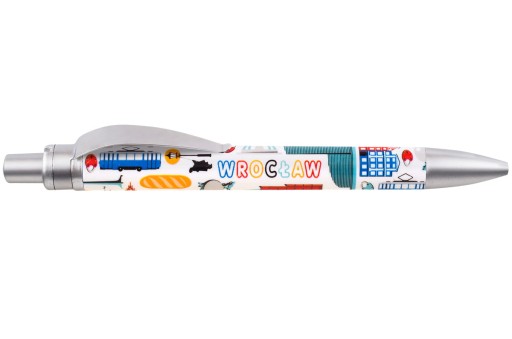 Długopis z wzorem przedstawiającym symbole miasta Wrocławia.